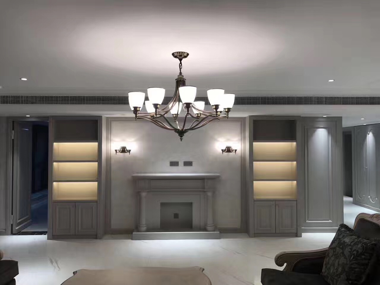 客厅沙发墙上可以安装一对壁灯,不仅具有局部照明的效果,同时还能在会客时增加融洽的气氛。电视墙上安装一对壁灯,既可以提升室内艺术氛围,又可以调节电视的光线,使画面变得柔和,起到保护视力的作用。